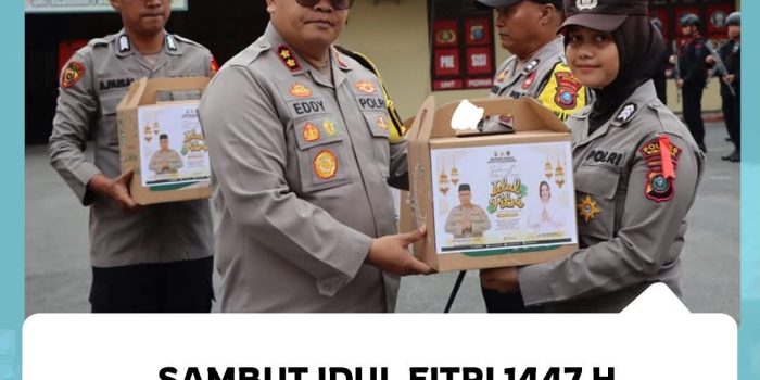 Keterangan Foto : Kapolres Sibolga Serahkan Bingkisan Idul Fitri kepada Personel Polres Sibolga. Sibolga (LN) – Menjelang Hari Raya Idul Fitri, Kapolres