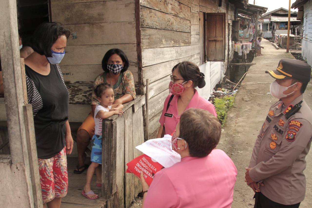 Ketua Bhayangkari Bagikan Sembako Dikampung Nelayan