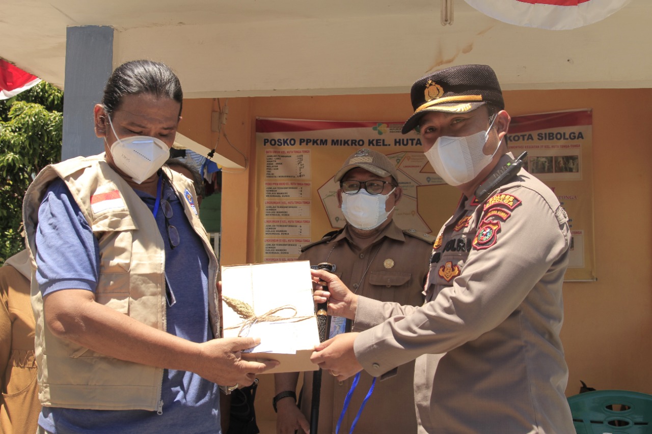 Sibolga – Kapolres Sibolga AKBP Taryono  Raharja SH, SIK lakukan kunjungan kerja di Satgas Posko PPKM Kelurahan Huta Tonga-Tonga, Rabu (25/08/2021) siang.