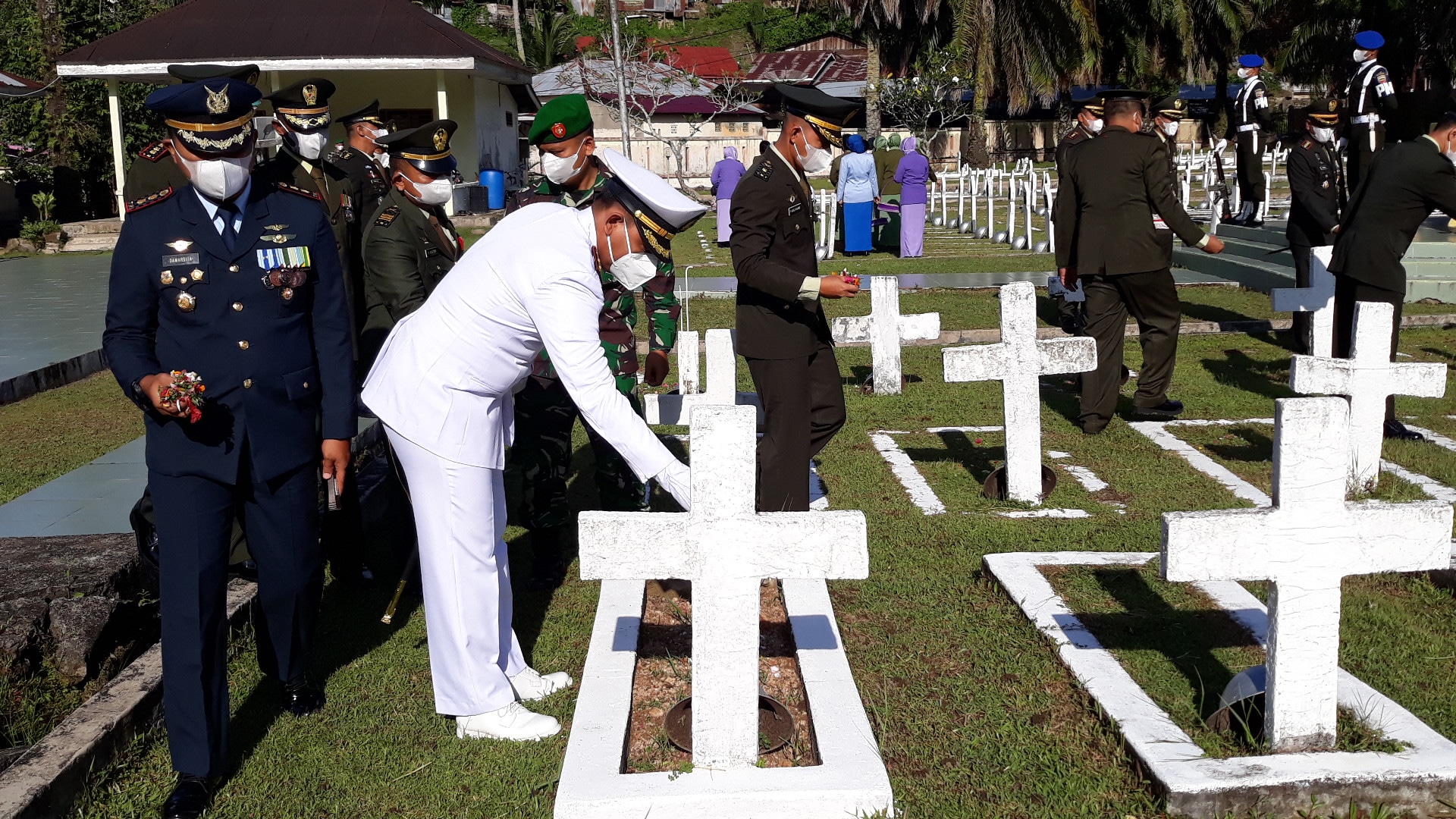 pelaksanaan Upacara Ziarah tahun ini dikarenakan masih dalam situasi pandemi Covid 19 , dilaksanakan upacara dengan bentuk minimalis dengan 5 orang personil dari masing masing Satuan dan tetap mematuhi protokol kesehatan , pencegahan penyebaran Covid-19.(ril)