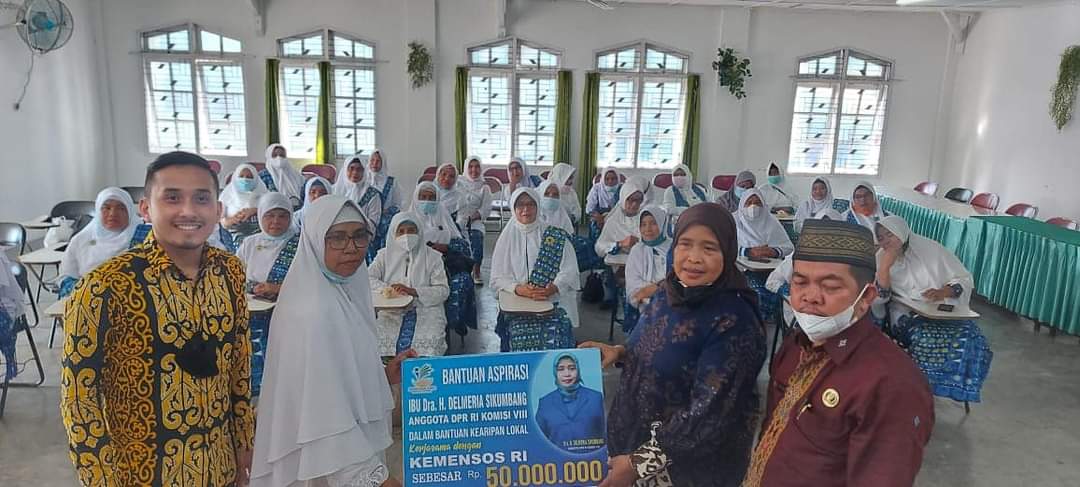 Dalam Hal Ini Kemensos RI Sebagai Mitra Kerja Komisi VIII DPR RI, Melalui Hj Delmeria Sikumbang, berikan perhatian penuh Kepada Keluarga besar Penyerahan dilaksanakan di Aula KPN Budi Luhur ,Jalan Kenanga, Kota Padang Sidimpuan, didampingi Tenaga Ahli, dan Pengurus BKMT Kabupaten Tapanuli Selatan.