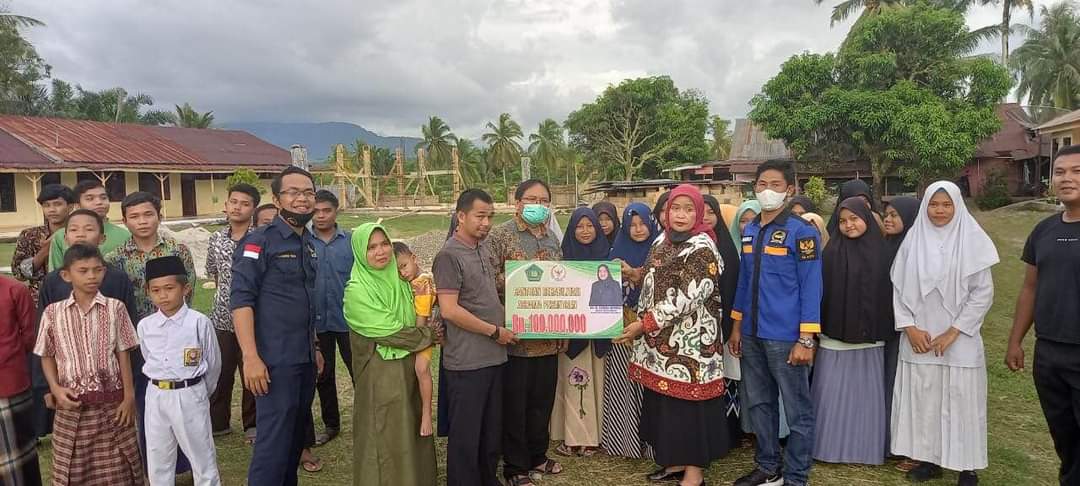Tapteng – Anggota DPR RI Hj. Delmeria Sikumbang dari Komisi VIII menyalurkan bantuan Bantuan Rehabilitas Asrama Pondok Pesantren Quddussalam Pasar Sorkam Rp. 100.000.000 yang ada di Kabupaten Tapanuli Tengah, Jumat (27/11/2021)kemarin.