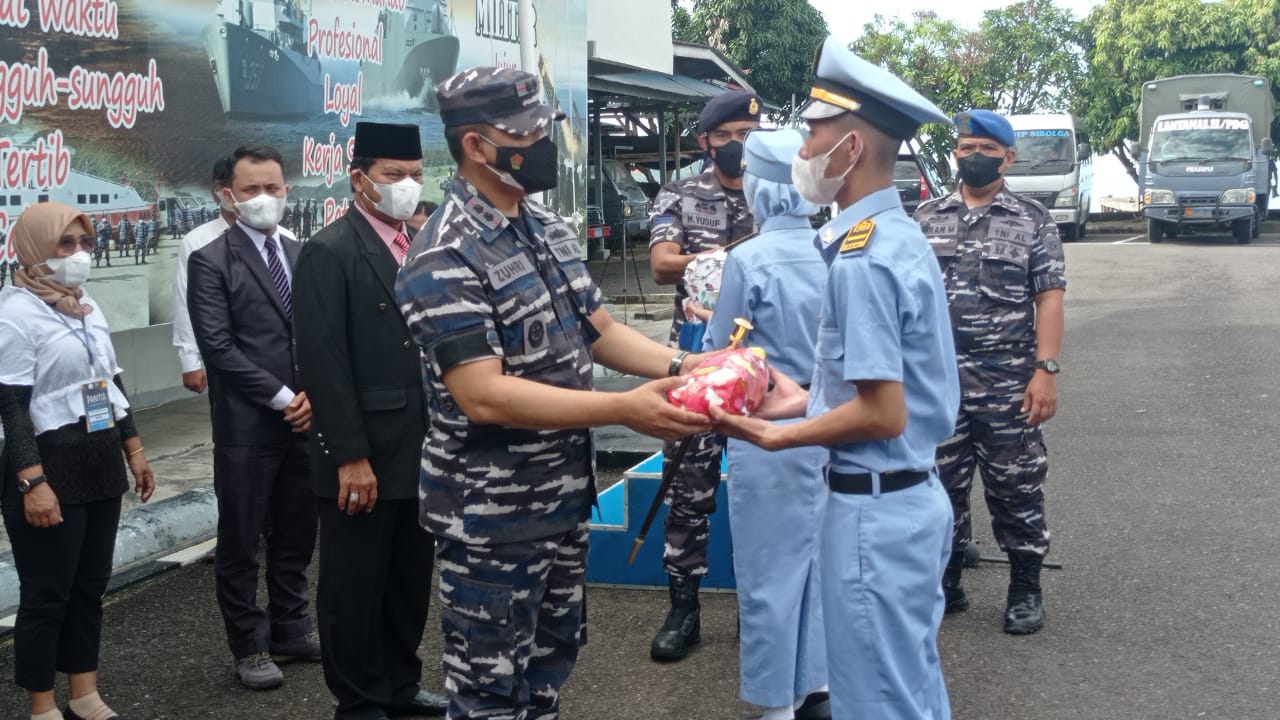 Sibolga – Komandan Lanal Sibolga, Letkol Laut (P) Syaifuddin Zuhri, M.Tr. Opsla menutup Pendidikan Dasar Bela Negara mahasiswa dan mahasiswi STP Sibolga di lapangan Trisila Lanal Sibolga Jln. S. Parman No 26 Ps Baru Sibolga, Sabtu (11/12/2021)