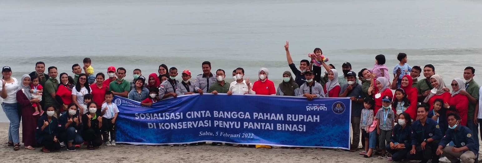Tapteng – Kantor Perwakilan (KPw) Bank Indonesia (BI) Sibolga menggelar sosialisai cinta rupiah kepada warga dan anak-anak di lokasi Konservasi Penyu Pantai Binasi, Kelurahan Binasi, Kecamatan Sorkam Barat, Kabupaten Tapanuli Tengah (Tapteng), Sabtu (5/2/2022).