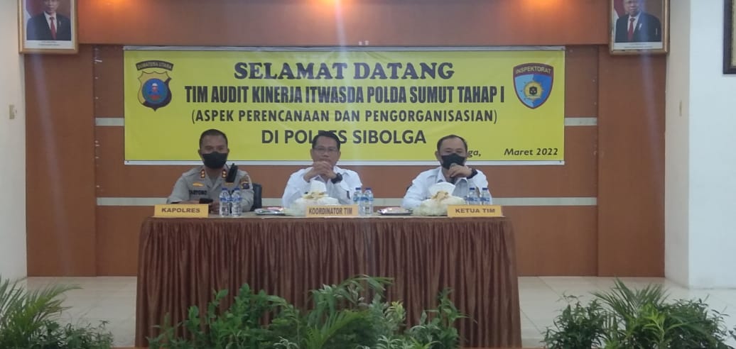 Sibolga – Team Audit Kinerja Itwasda Polda Sumut Tahap I Tahun 2022 lakukan Audit dalam menilai dan melihat sudah sejauh mana Kinerja Jajaran yang telah direncanakan, terutama dalam Aspek Perencanaan dan Pengorganisasian di Polres Sibolga, sabtu (26/3).