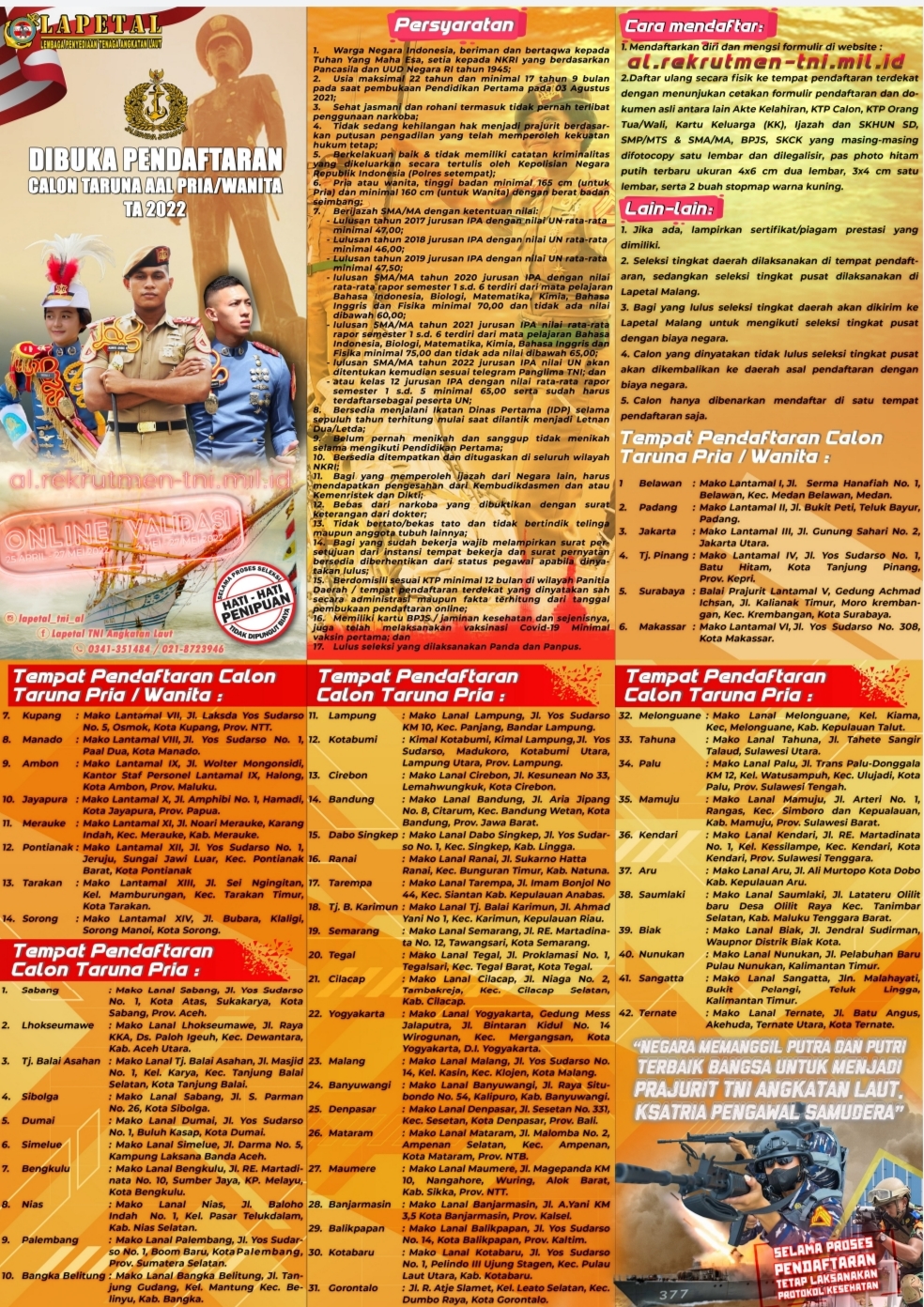 LANAL SIBOLGA KEMBALI MEMBUKA PENERIMAAN PRAJURIT CALON TARUNA AKADEMI ANGKATAN LAUT TAHUN 2022