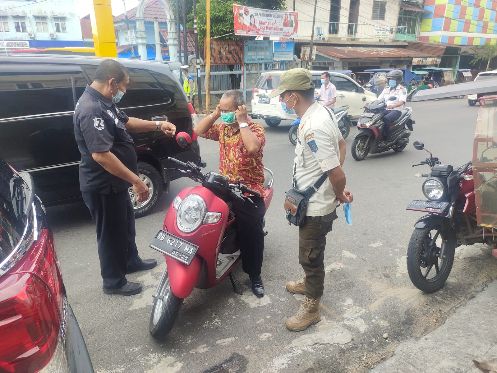 Turut serta personil Polri sebanyak 5 orang dan Satpol PP sebanyak 15 orang dengan pelanggaran sebanyak 50 orang diberikan teguran lisan sebanyak 50 orang.