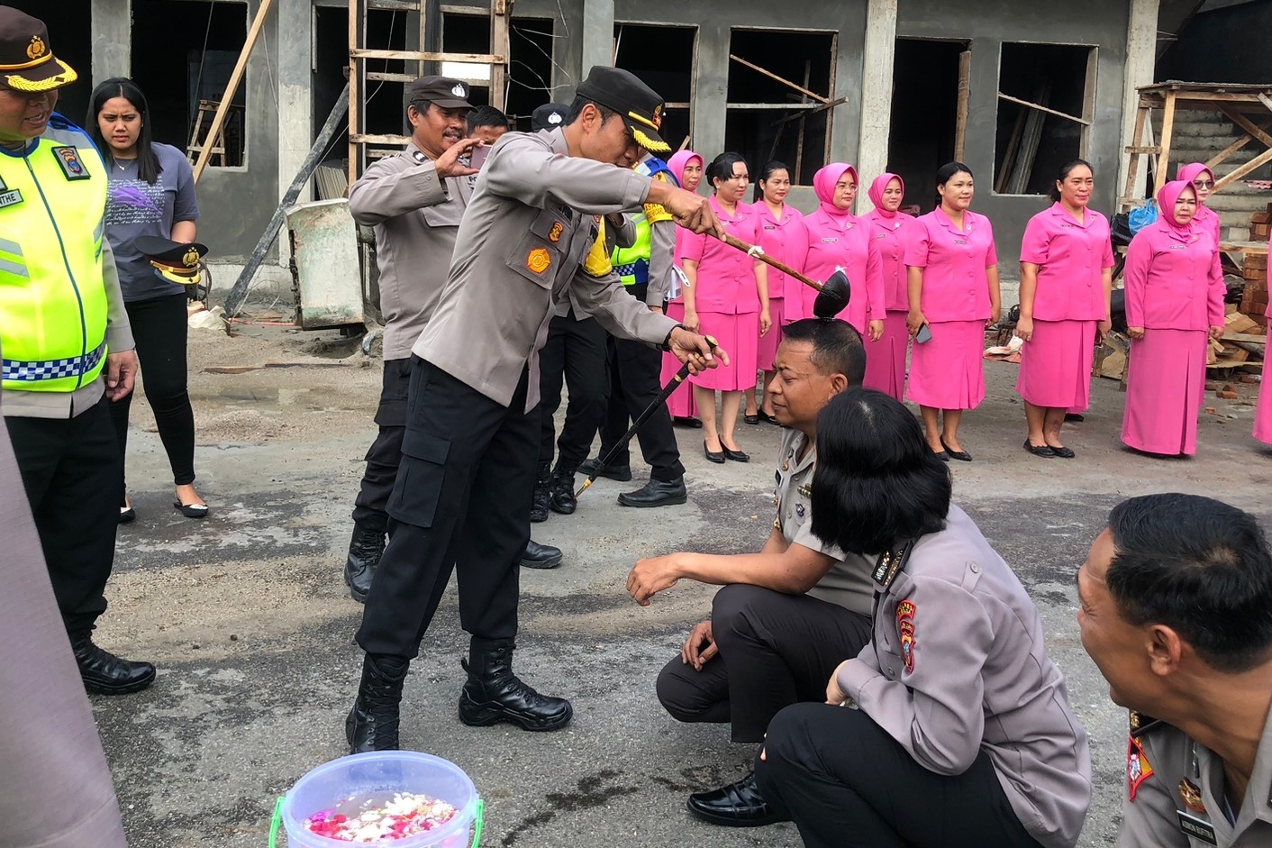 Bagi Personil yg mendapat anugrah kenaikan pangkat setingkat lebih tinggi hendaknya jangan cepat merasa puas tetapi anda harus mengevaluasi diri tentang prilaku dan capaian kinerja anda sehari hari baik di Kedinasan maupun lingkungan masyarakat.Usai giat upacara dilanjutkan dengan acara tradisi penyiraman air kembang kepada personil yg naik pangkat.