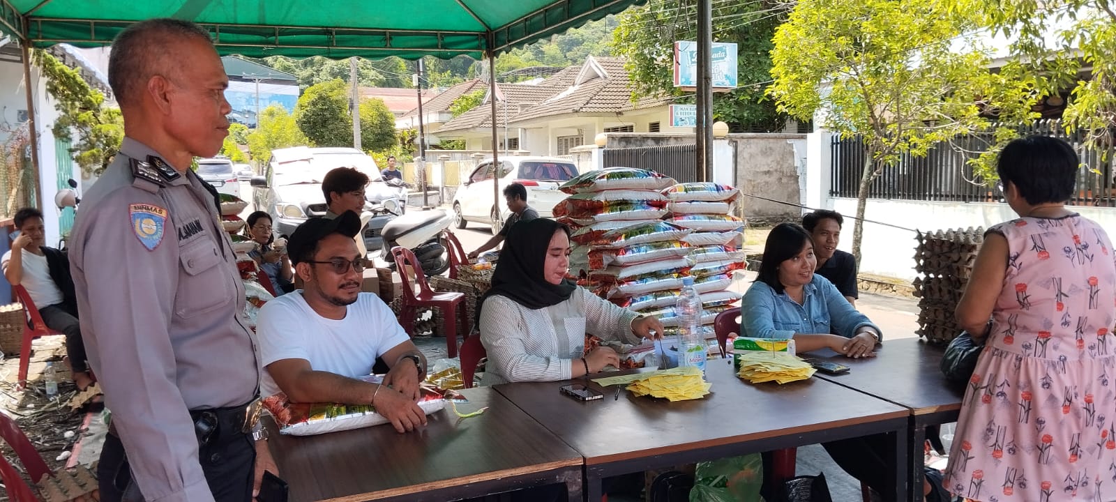 Keterangan Foto :  Kabid Perdagangan Disperindag Sibolga, Ananta Siregar saat mengelar Paras Murah di Jalan Albertus depan Asrama Katolik, Kecamatan Sibolga Kota, Kota Sibolga.