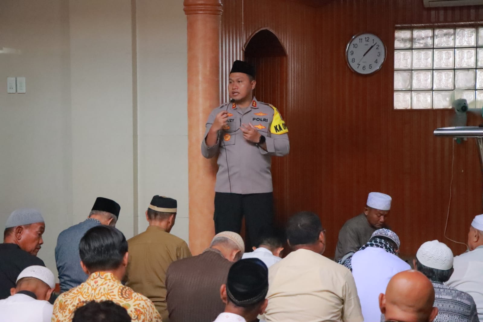 Keterangan Foto :Gelar Jumat Curhat Polres Sibolga Sampaikan Himbauan Kepada Jemaah Masjid Al-Hikmah Sibolga*