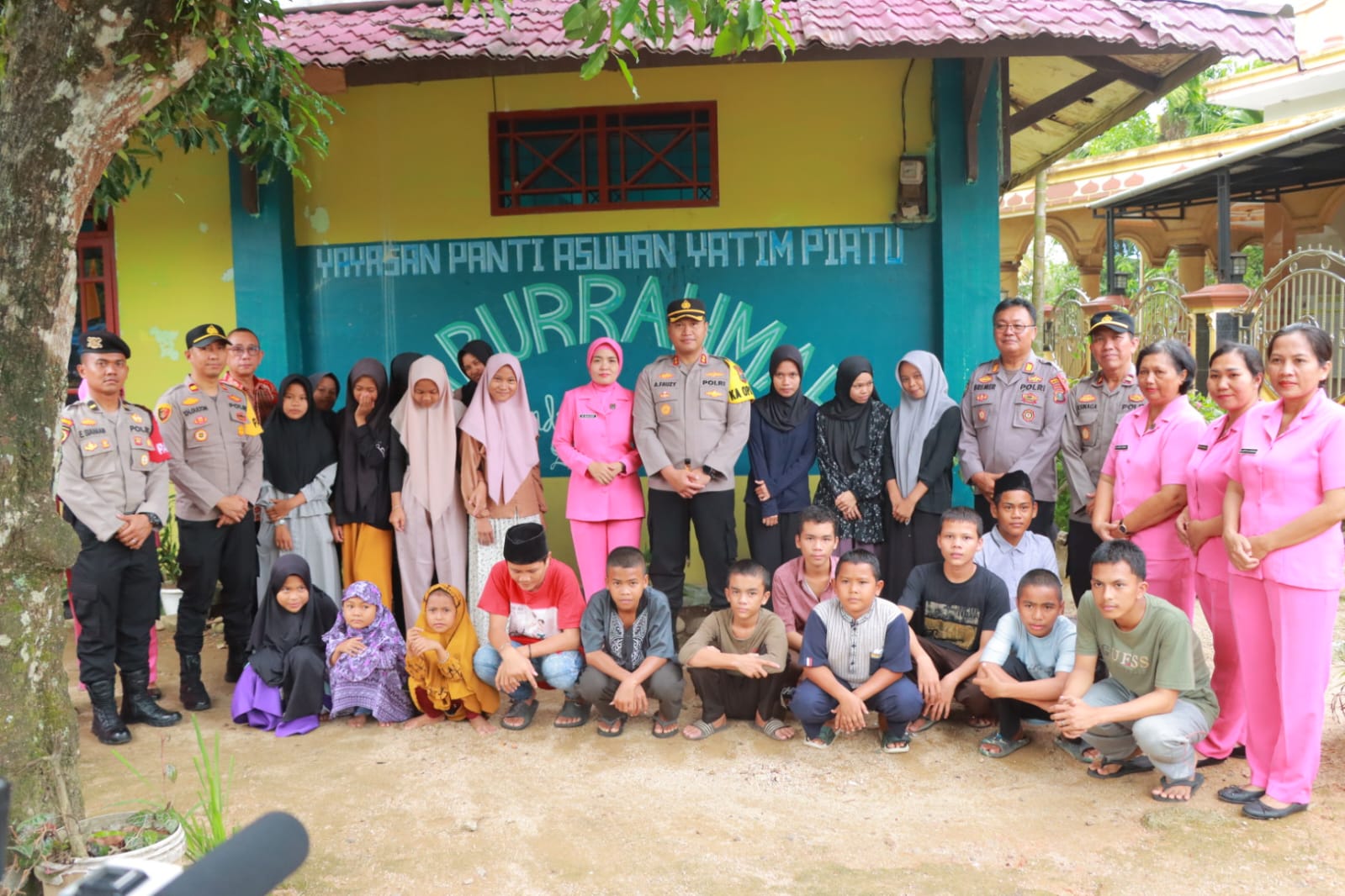 SIBOLGA – Kapolres Sibolga AKBP Achmad Fauzy, SH, SIK, MIK dan Ketua Bhayangkari Cabang Sibolga Ny. Aulia Fauzy dan Rombongan Sambangi Yayasan Panti Asuhan Yatim Piatu Darrur Rahmah Kota Sibolga Jalan Jend. Sudirman Kelurahan Aek Parombunan Kecamatan Sibolga Selatan Kota Sibolga. Kedatangan Kapolres Sibolga dan Rombongan ke Yayasan Panti Asuhan Yatim Piatu Darrur Rahmah Kota Sibolga, menyerahkan bantuan berupa Paket Bahan Pokok kepada anak-anak Panti Asuhan Yatim Piatu Yayasan Darrur Rahmah Kota Sibolga, dalam rangka Hari Juang Polri yang jatuh pada tanggal 21 Agustus 2024, kegiatan ini dilaksanakan pada hari Jumat (23/08/2024).