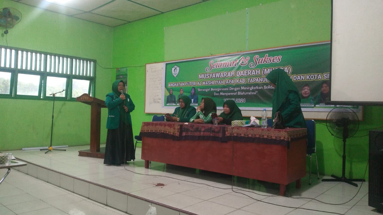 Sibolga (LN) – PD Angkatan Putri AL- Washliyah Kabupaten Tapanuli Tengah laksanakan Musawarah Daerah (Musda) dan Pelantikan PD APA Tapanuli Tengah, yang dilaksankan Aula Kampus STIE AL-Washliyah Sibolga –Tapteng, Jl. P. Sidempuan, No. 98, Sarudik, Kab. Tapanuli Tengah, Sabtu (09/11/2024) siang.