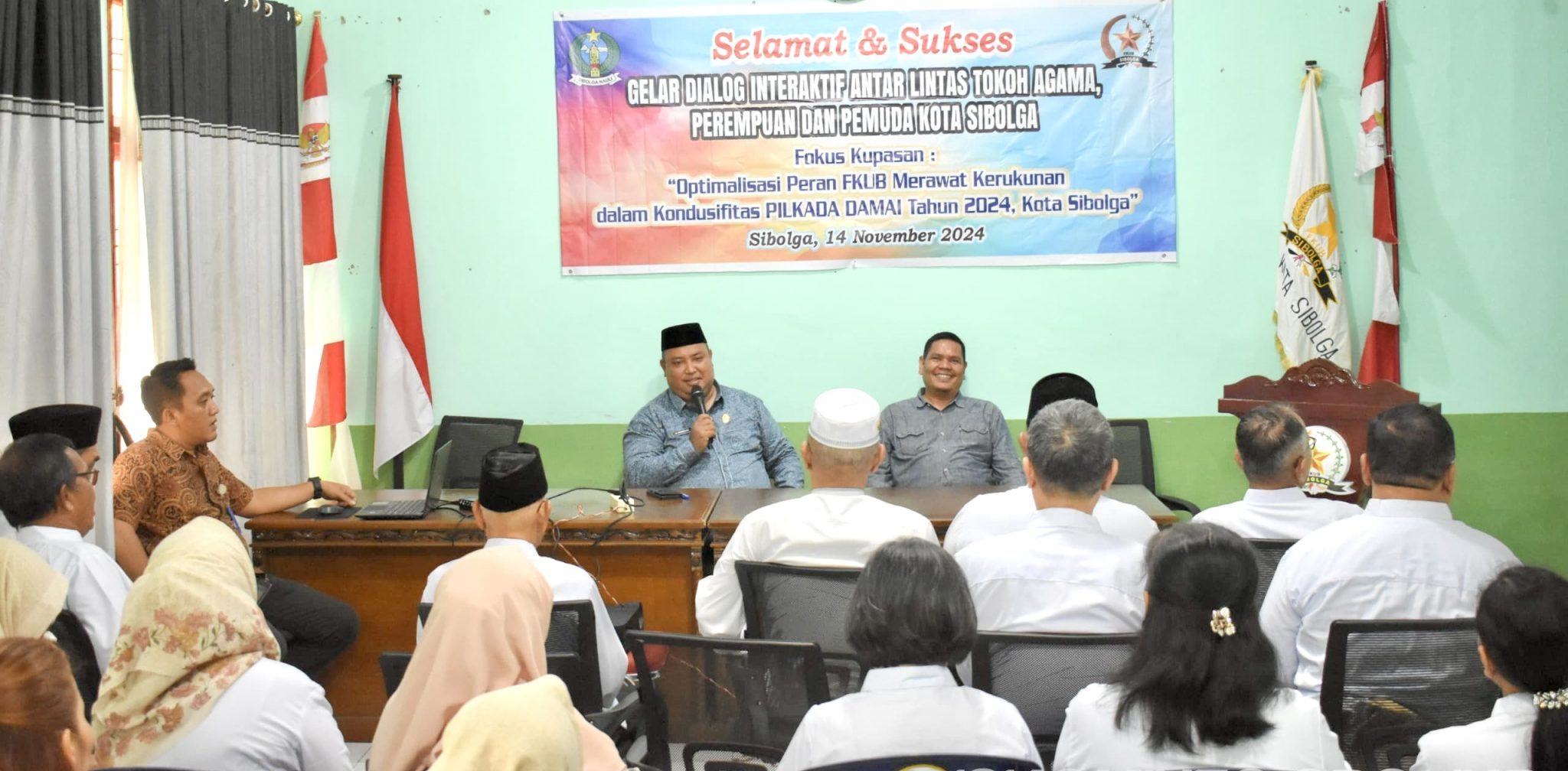 Dialog Interaktif bertema Optimalisasi Peran Forum Kerukunan Umat Beragama (FKUB) Merawat Kerukunan Dalam Kondusifitas Pilkada Damai Tahun 2024. Acara ini diselenggarakan di Aula Kantor FKUB Sibolga, Jl. Suprapto No. 56, pada Kamis (14/11/24) pagi.