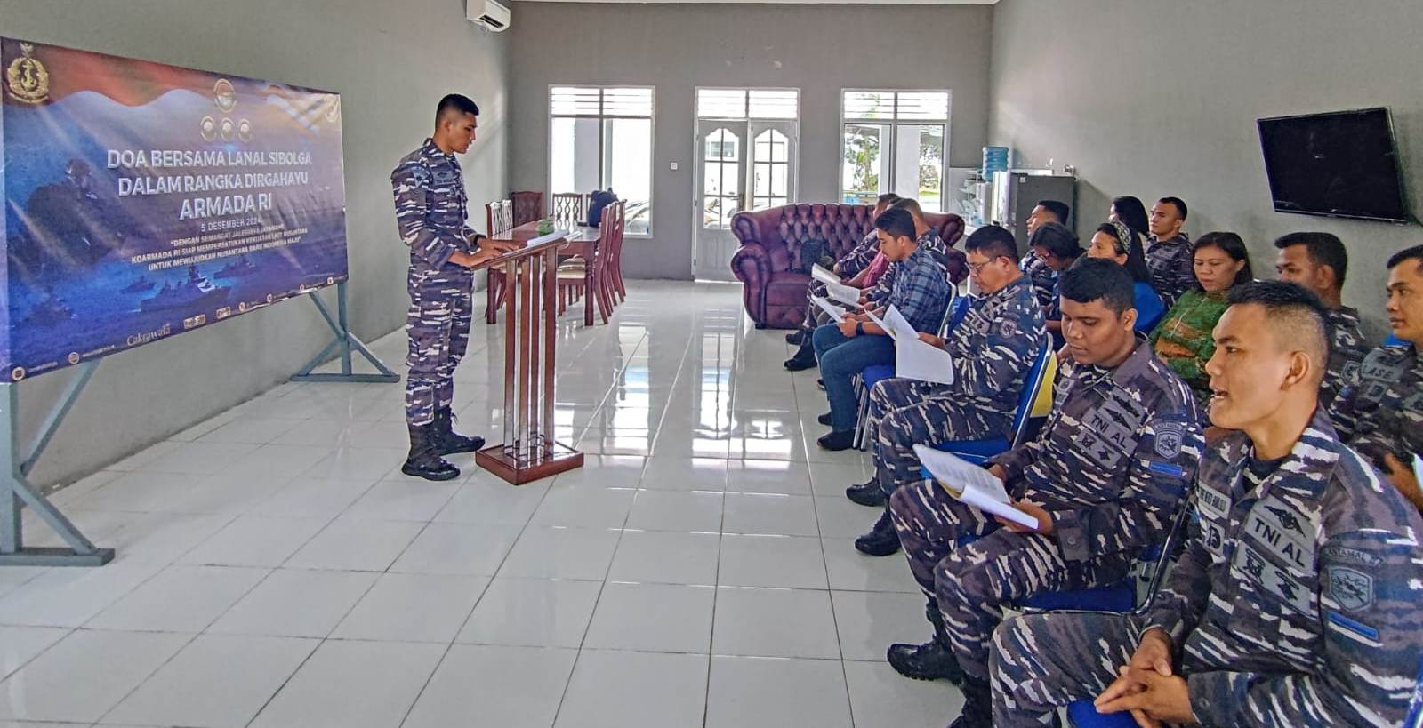 KETERANGAN FOTO : JELANG HUT ARMADA REPUBLIK INDONESIA TAHUN 2024, PRAJURIT LANAL SIBOLGA MELAKSANAKAN DOA BERSAMA.