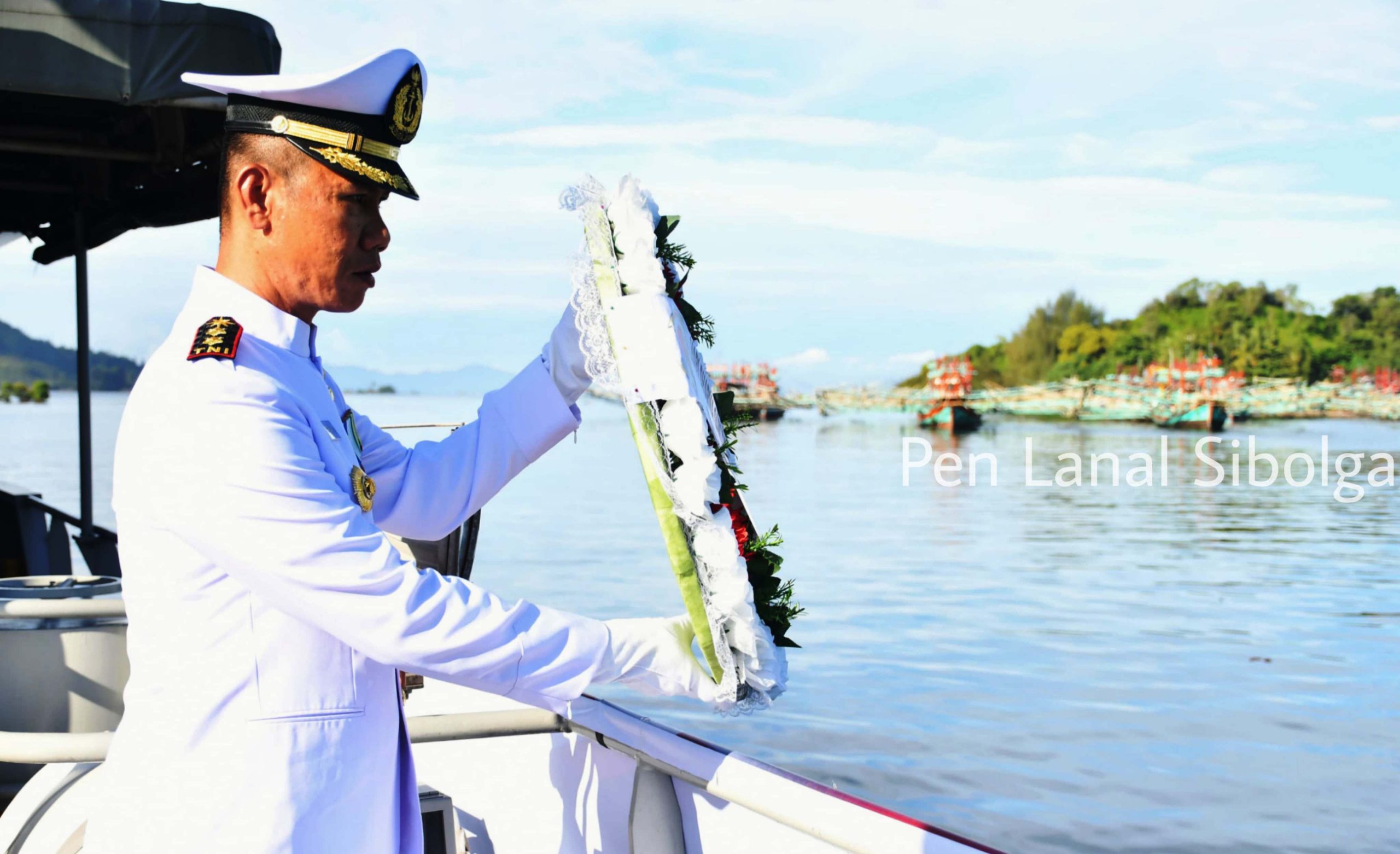 DANLANAL SIBOLGA PIMPIN UPACARA TABUR BUNGA DALAM RANGKA HARI DHARMA SAMUDERA 2025