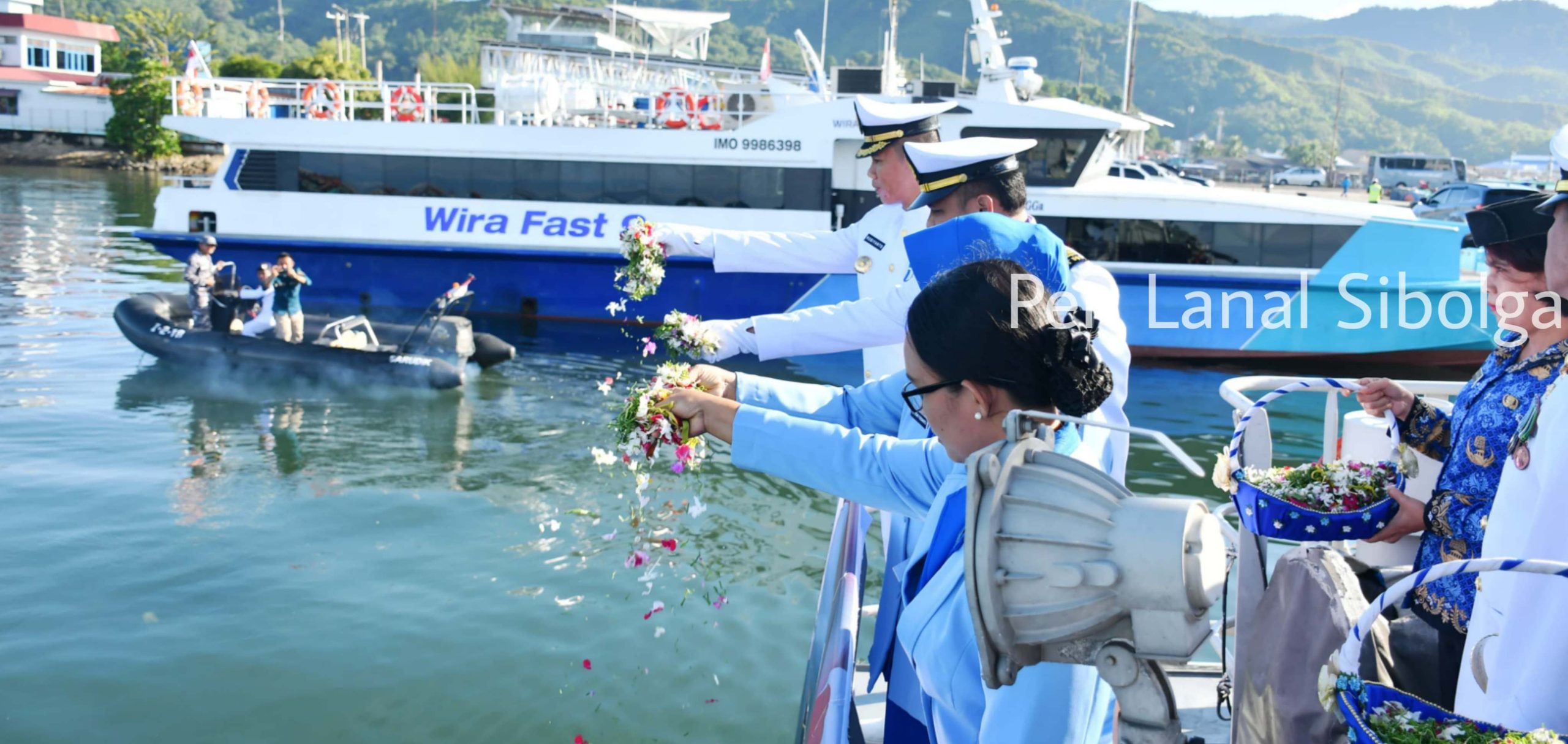 Dalam upacara tersebut, Danlanal Sibolga sempat melarungkan karangan bunga dan melakukan prosesi tabur bunga dari buritan KAL Sarudik 1-2-18 dan diikuti oleh sejumlah perwira Lanal Sibolga yang hadir.
