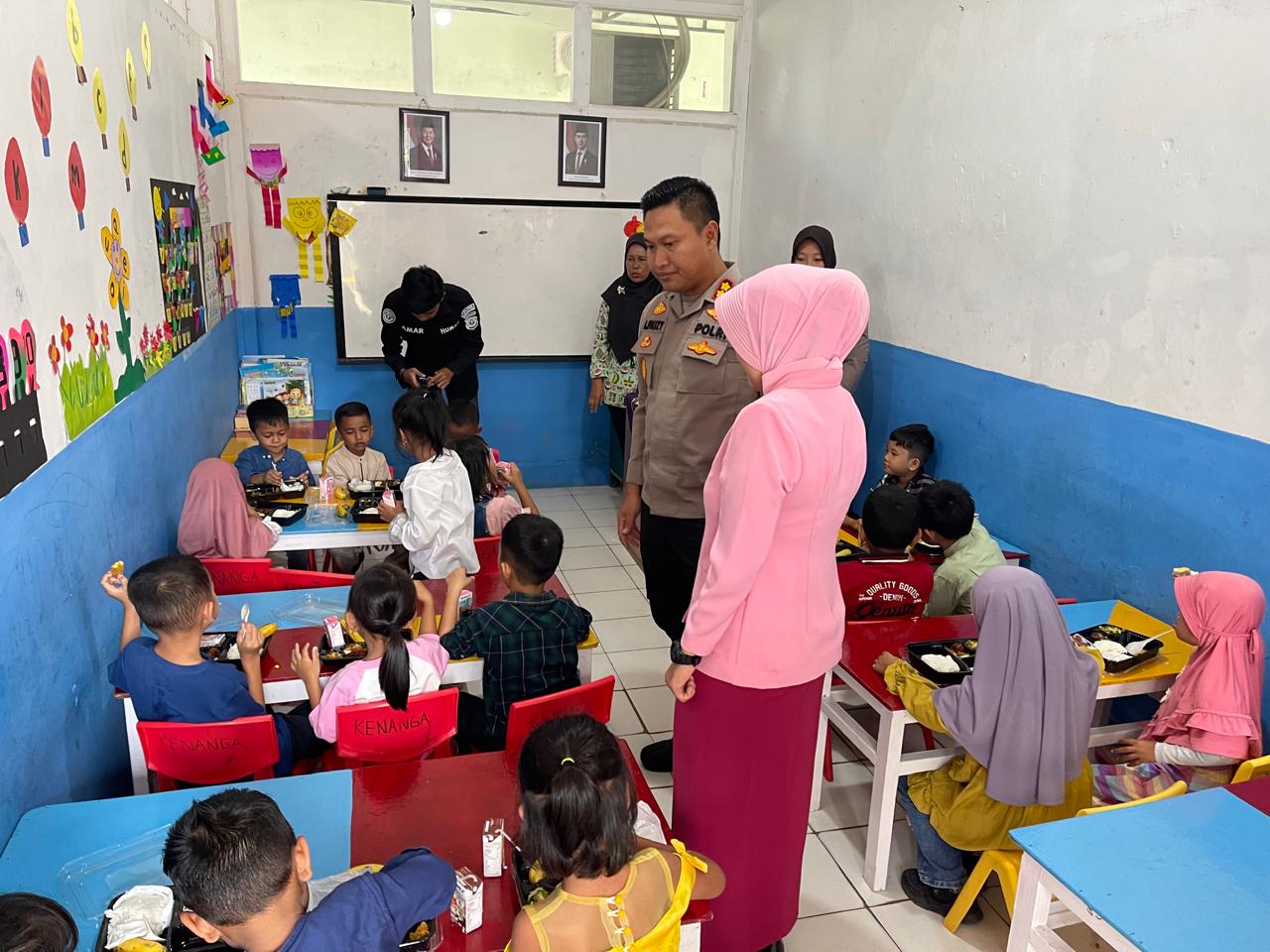 Keterangan Foto : PJU Polres Sibolga Hadiri, Makan Bergizi Gratis Di TK Kemala Bhayangkari 12 Sibolga.