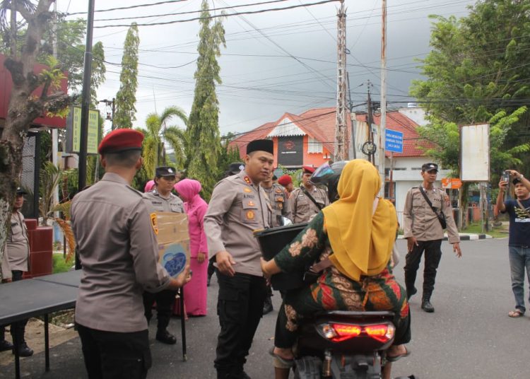 SIBOLGA (LN) – Polres Sibolga bersama Bhayangkari Cabang Sibolga melaksanakan kegiatan Bakti Sosial berupa pembagian takjil kepada warga yang melintas di Jalan Raya dan kepada warga yang kurang mampu di Kota Sibolga.