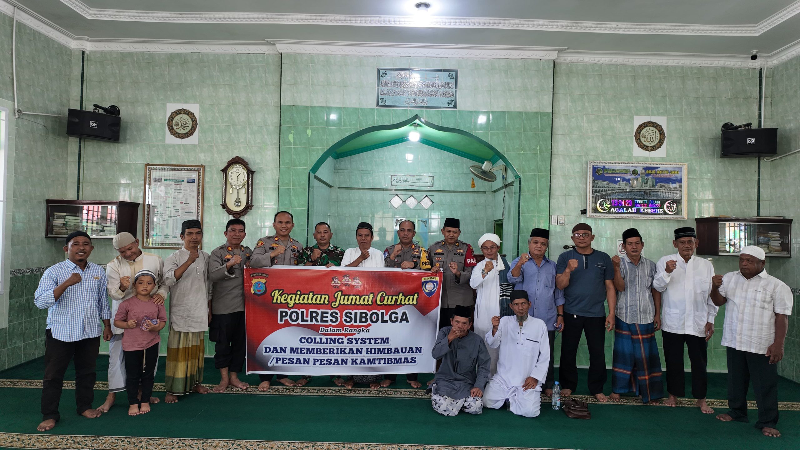 Kapolres Sibolga AKBP Eddy Inganta SH, SIK, MH, memimpin langsung kegiatan ini bersama Kasat Binmas AKP Martua Sinaga, Kapolsek Sibolga Sambas IPTU Yuna H. Gultom, Ps. Kapolsek Sibolga Selatan IPTU Pasma Pasaribu, serta Kasium Polsek Sibolga Sambas IPDA HB. Siagian. Hadir pula para tokoh masyarakat, tokoh agama, tokoh adat, pengurus BKM, dan jemaah Masjid Al-Falah.