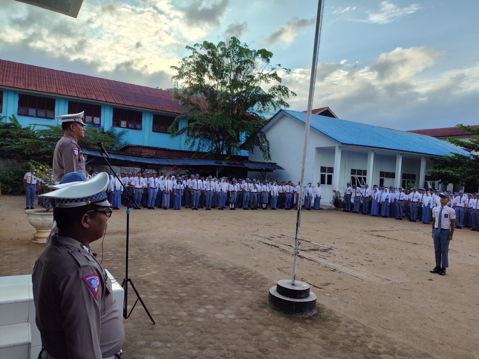 Kegiatan ini diawali dengan pelaksanaan Upacara Bendera yang dipimpin oleh personel Satlantas Polres Sibolga. Setelah itu, para siswa dan guru diberikan sosialisasi tentang pentingnya tertib berlalu lintas, khususnya bagi pelajar yang menggunakan kendaraan roda dua.