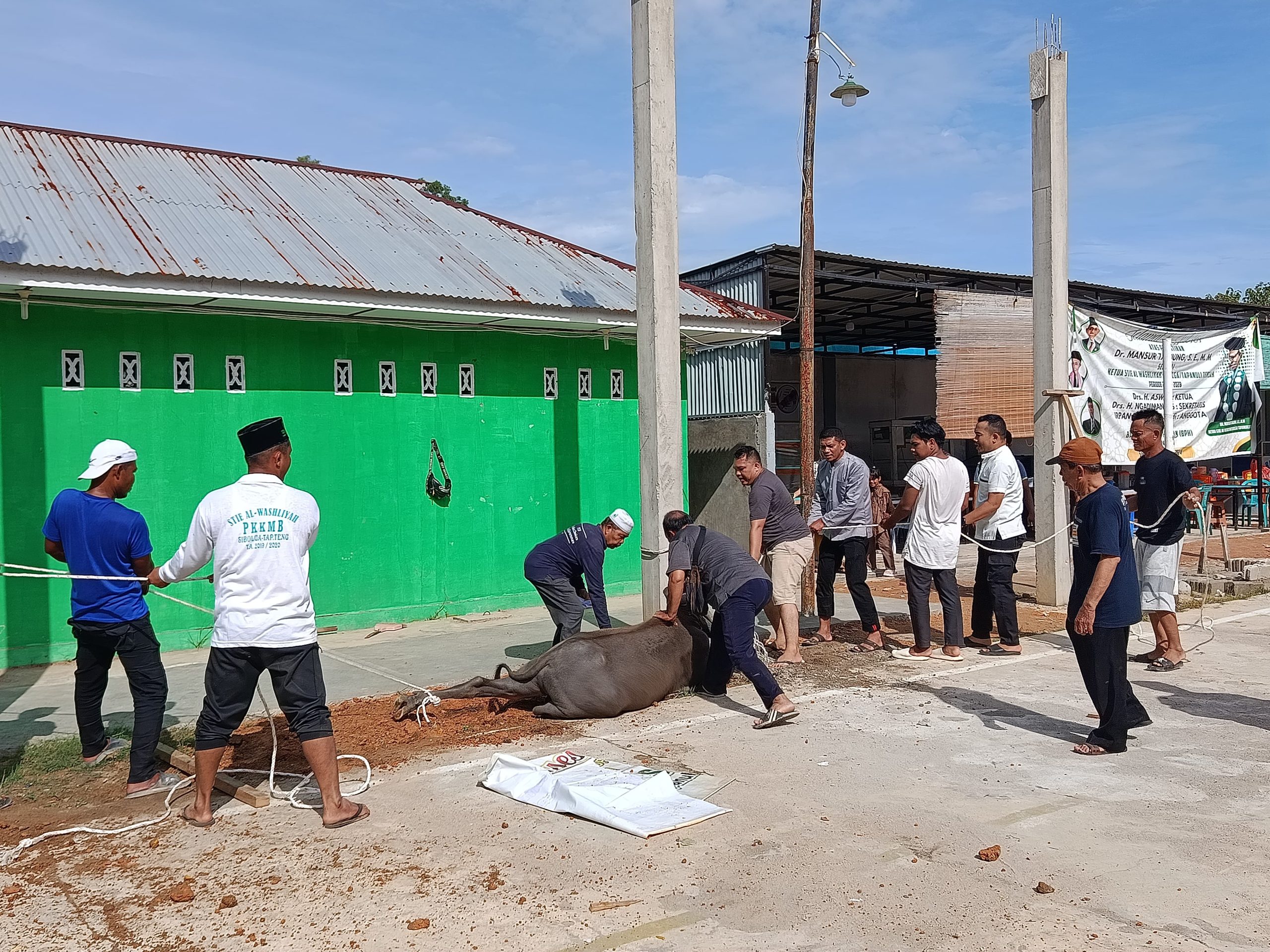 Keterangan Foto : STIE Al Washliyah Sibolga Tapteng Sembelih 3 Ekor Kerbau dalam Rangka Iduladha 1446 H.