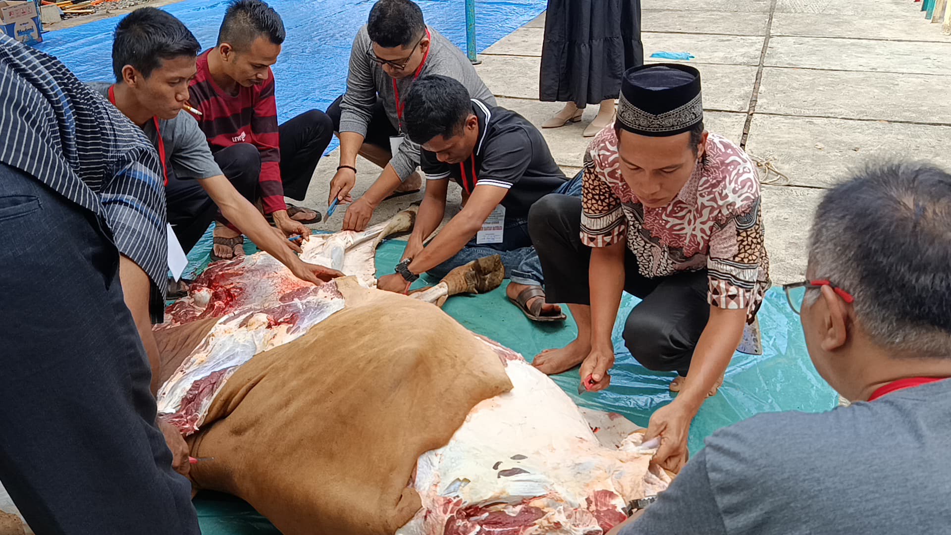 Kegiatan penyembelihan dilaksanakan oleh tim jagal yang berpengalaman, dengan pengawasan langsung dari panitia. Setelah disembelih, daging kurban dikemas secara higienis dan dibagikan kepada penerima dengan sistem antrean tertib.