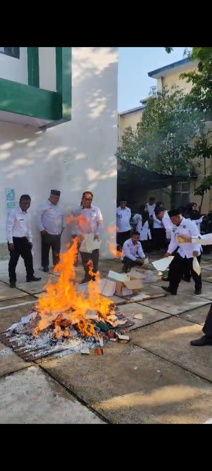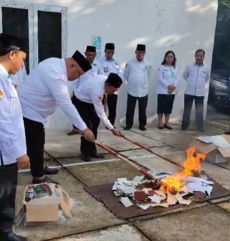 Prosesi pembakaran dilakukan secara simbolis oleh Kepala Kemenag bersama pejabat struktural, lalu dilanjutkan dengan pemusnahan menyeluruh. Kegiatan ditutup dengan penandatanganan berita acara oleh para pejabat yang terlibat sebagai saksi.(red)