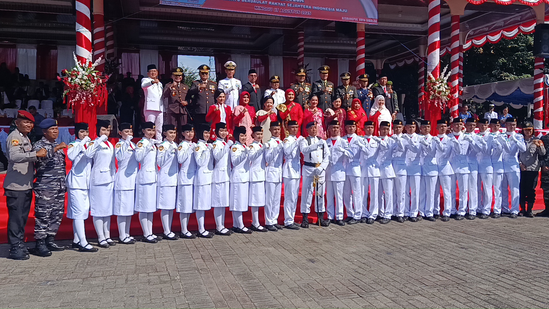 Upacara HUT ke-80 RI di Kota Sibolga dipimpin langsung oleh Komandan Detasemen Polisi Militer Angkatan Laut (Dandenpomal) Lanal Sibolga, Kapten Laut (PM) Dedi Dosi, sebagai Komandan Upacara. Rangkaian acara berlangsung lancar, mulai dari pembacaan teks proklamasi, penghormatan bendera, hingga pengibaran Merah Putih.