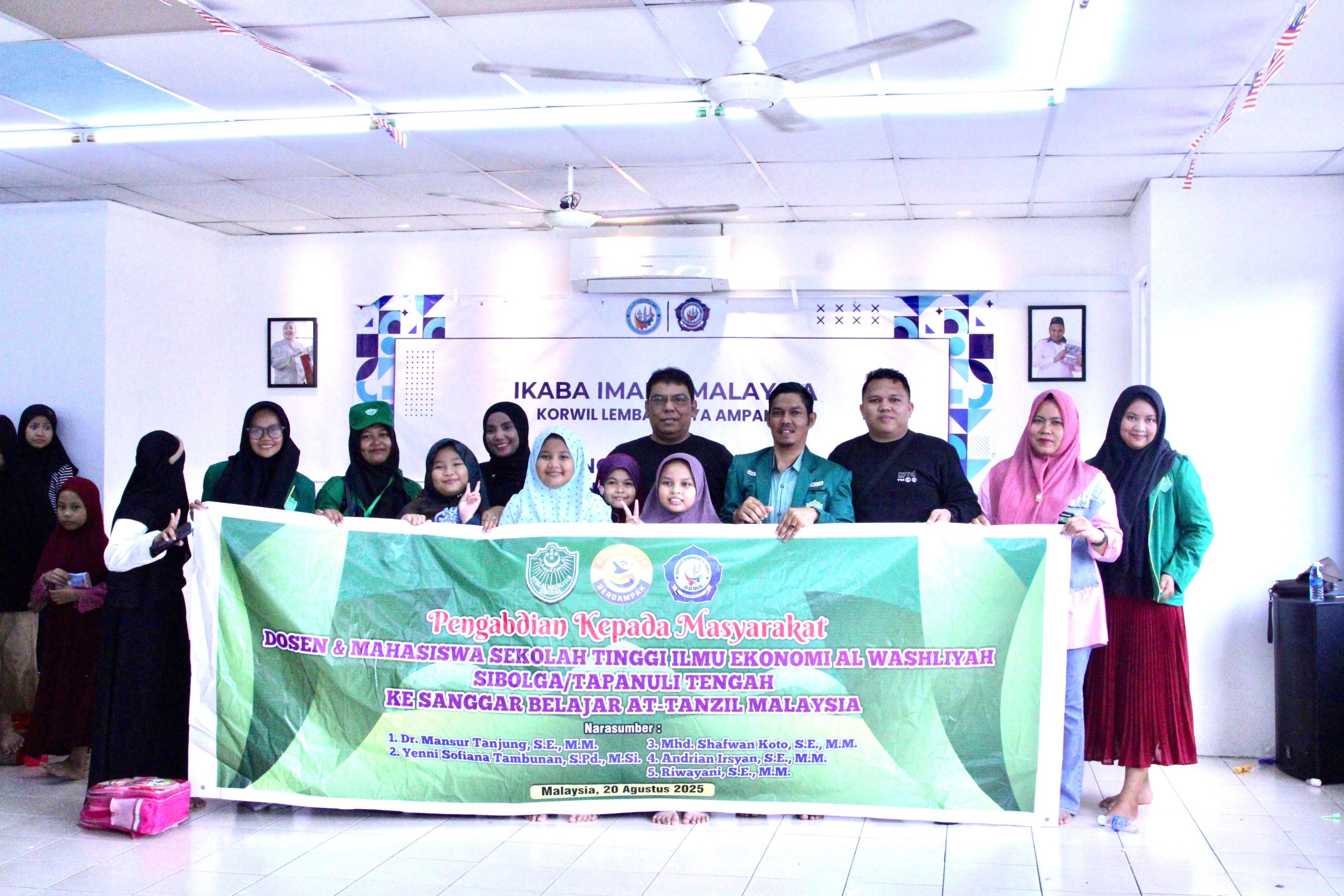 Foto: Ketua STIE Al Washliyah Sibolga-Tapteng, Dr. Mansur Tanjung, SE, MM bersama jajaran pimpinan dan mahasiswa saat melaksanakan Program Pengabdian Kepada Masyarakat (PKM) internasional di Sanggar Belajar At-Tanzil, Malaysia, Selasa (20/8/2025).