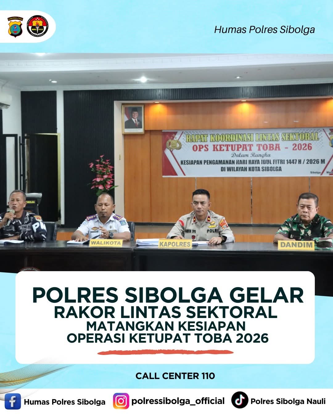 Sibolga (LN)- Polres Sibolga menggelar Rapat Koordinasi Lintas Sektoral Operasi Ketupat Toba 2026 bersama TNI, pemerintah daerah dan berbagai instansi terkait, Rabu (11/03/2026) di Aula Dr. H.M. Jasin Polres Sibolga.